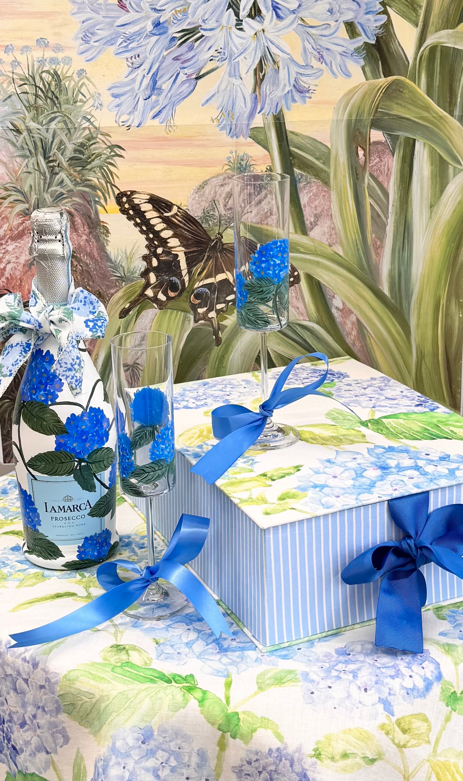 Hand-painted in any design, paired with handmade fabric-covered gift boxes in any size or pattern, also sold individually. An unusual gift to surprise the one you love, champagne, wine, whisky, etc...